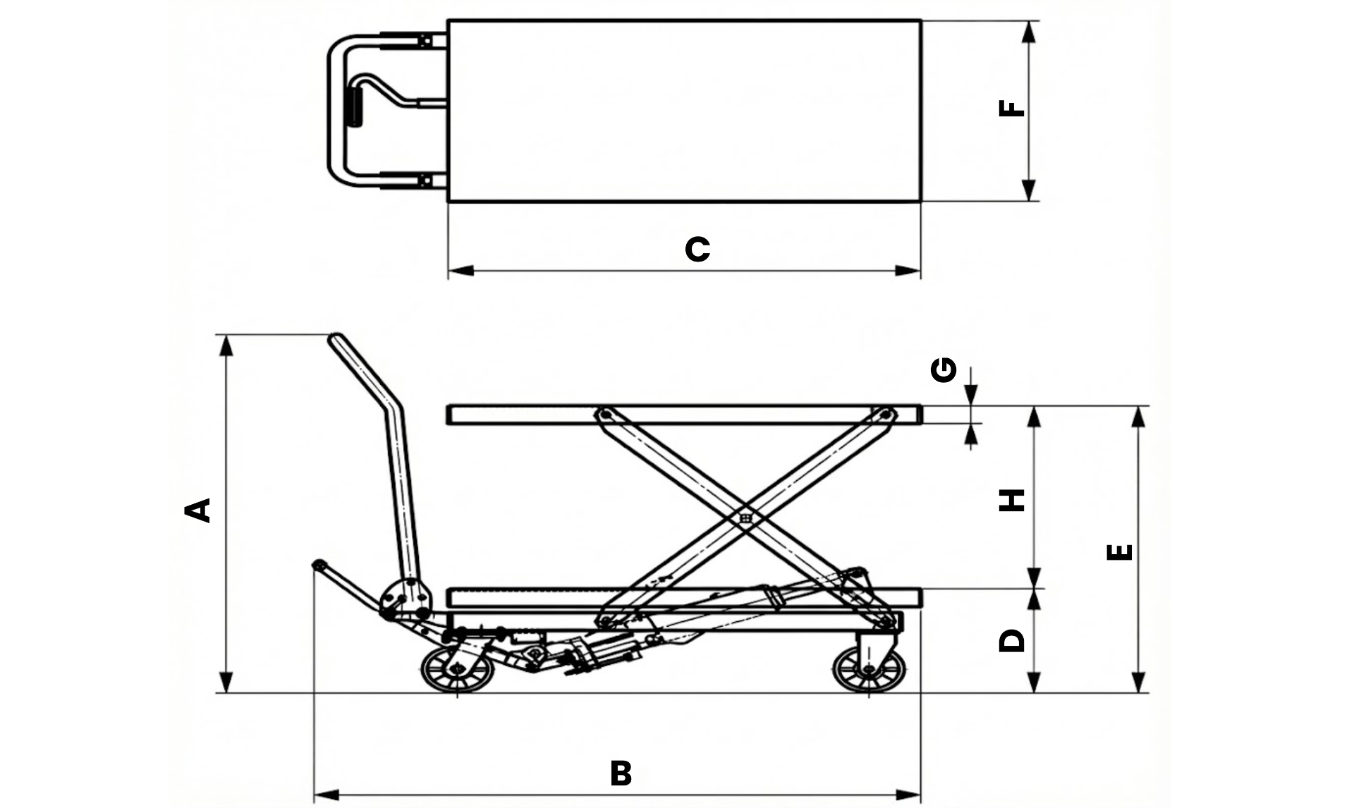 | cod | A | B | C | D | E | F | Ruote d. | Portata | Peso |